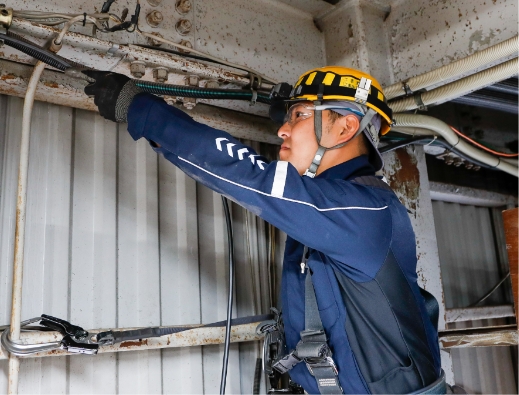 日本製鉄九州製鉄所大分地区の建設時から参画し、構内の各種電気設備や情報通信設備の施工および定期的な整備を担当しています。