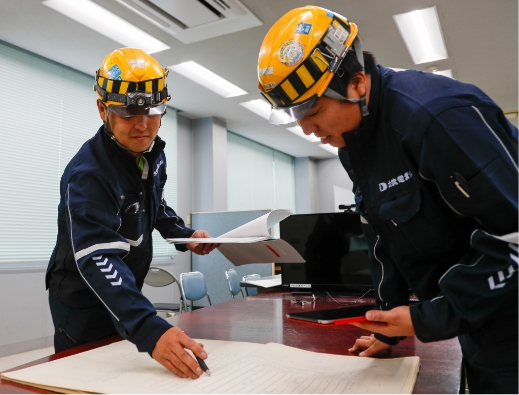 日本製鉄構内事業所では、製鉄所内の電気設備・計装設備・気送管設備の点検、保守、修理を中心に行っています。特に気送管設備では鉄の試料搬送が成分分析に支障をきたさないように、三交替で対応しています。また、企画・設計・施工も手掛け製鉄所全体の安定稼働を支える重要な役割を果たしています。