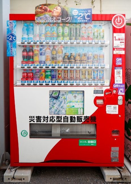 地域社会への貢献と環境への配慮を目的に、「災害対応型自動販売機」と「CO₂吸収機能付き自動販売機」を本社に導入しました。災害対応型自販機は、停電時でも飲料を提供できる機能を備えており、万が一の災害時に社員や地域住民の命を守るインフラとして活躍します。